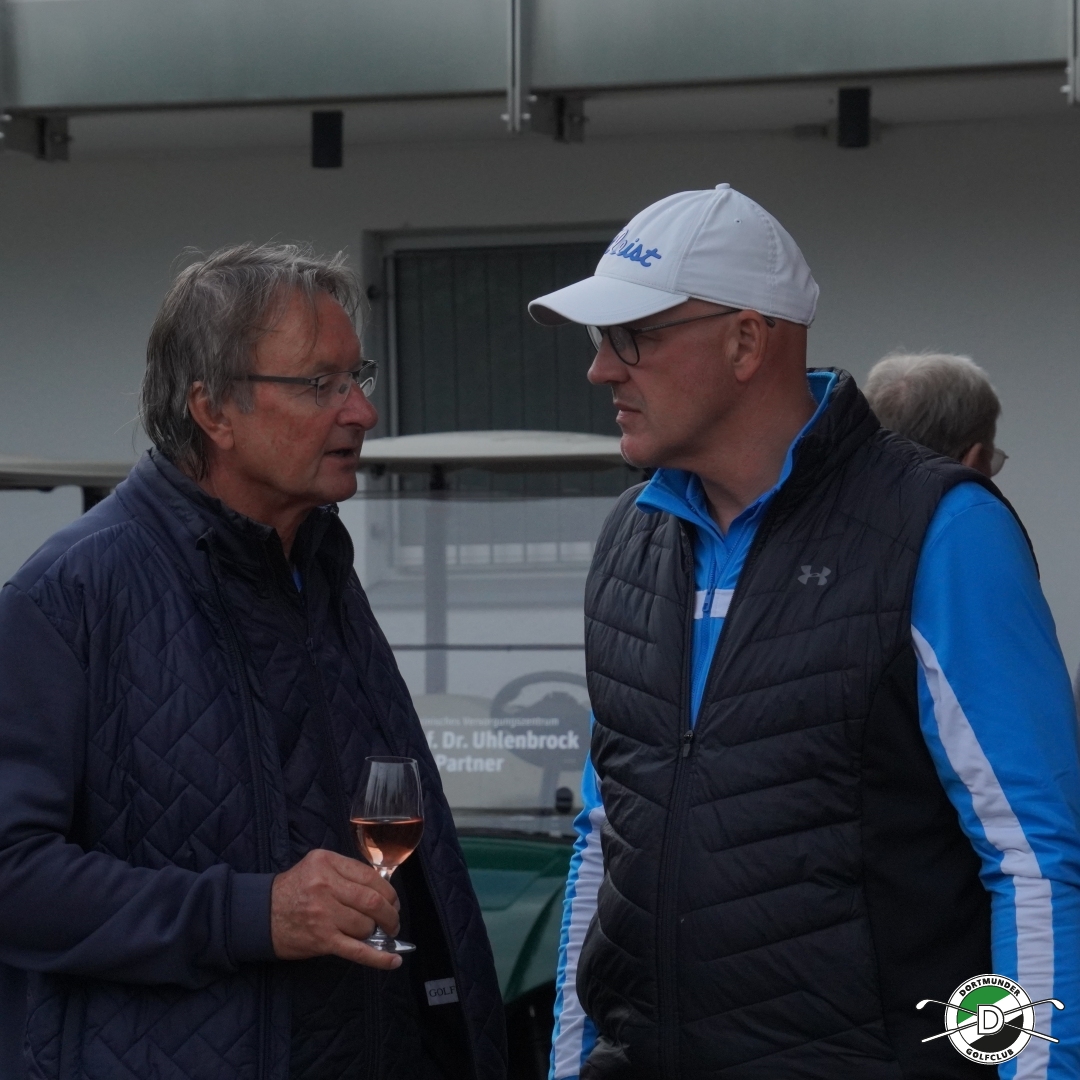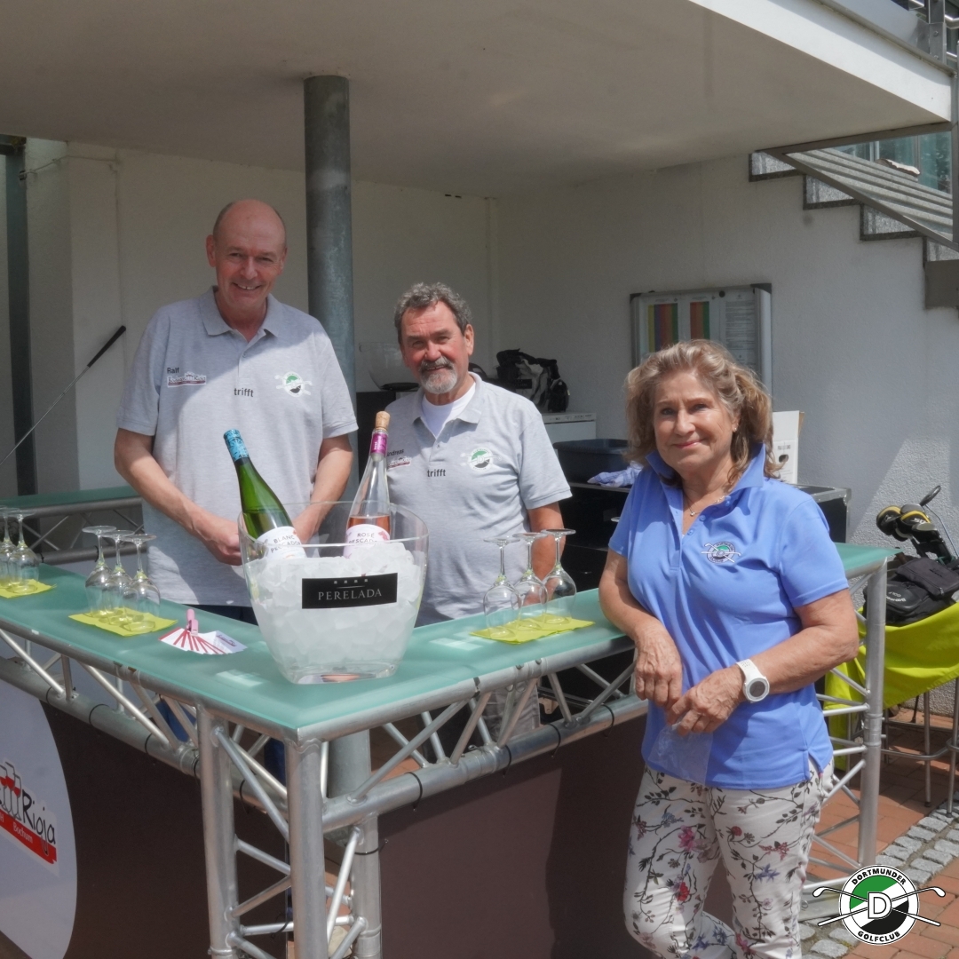 Auf der unteren Terrasse rund um die Weintheke der Bodegas Rioja wurden die Erlebnisse auf dem Platz in ausgelassener und fröhlicher Stimmung berichtet und nachbesprochen. Clubpräsidentin Andrea Marx und Sportvorstand Lena Wiebel mischten sich unter das Feld und beteiligten sich bei einem Weinchen am regen Gedankenaustausch.