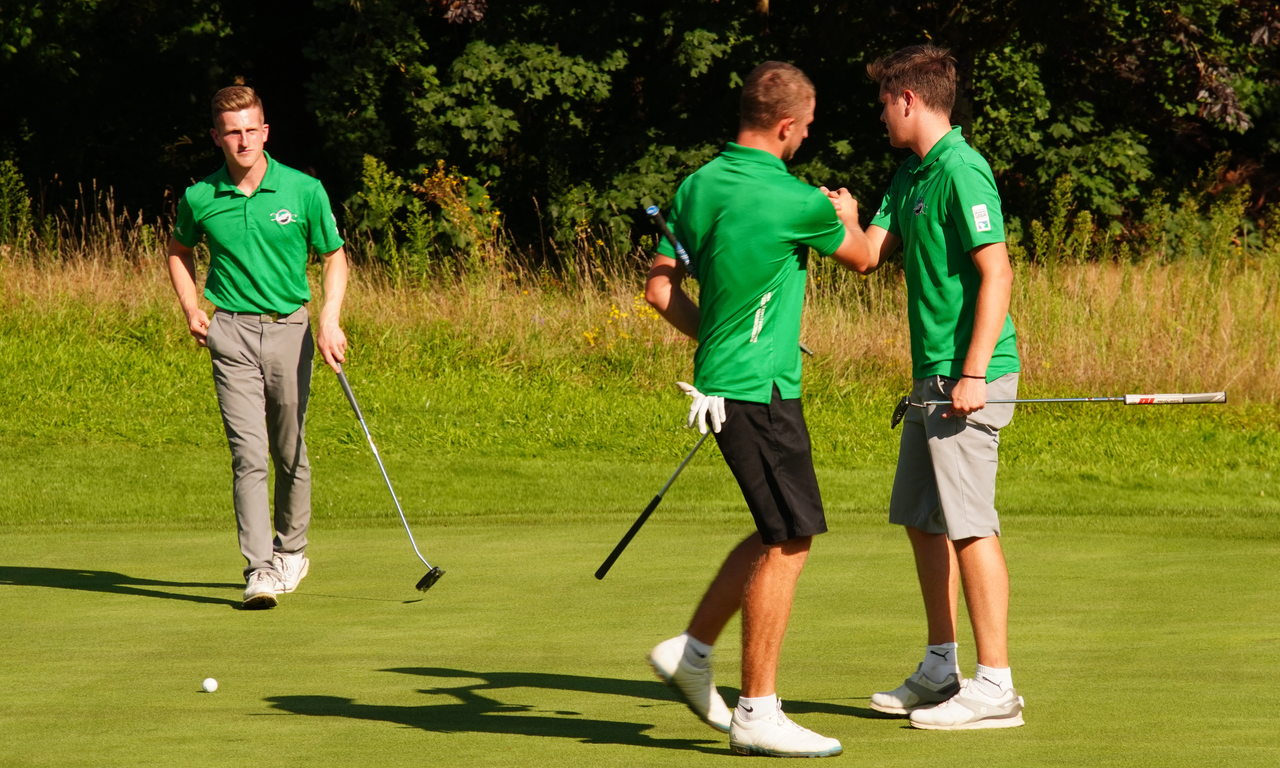 Hannovers Asse Leonhard Studzinski (Hcp -4,9), Junioren-Nationalspieler Tom Haberer (-4,8) und Bjarne Wietschorke (-1,9) stachen, so bravourös sich Matthias Tischler, Moritz Ostermann und Bastian Schmitz auch gegen sie wehrten. Auf Dortmunder Habenseite trumpften Hannes Ruhnau (gegen Wunderlich), Luis Ziffus (gegen Korallus) mi einem ganzen Punkt sowie Leo Maciejek (gegen Starcevic) und Haselhoff (gegen Bunzel) jeweils mit einem geteilten auf.